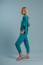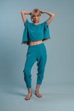 Bright and trendy, this jogger set is adorned with stylish beaded details for a fashionable, standout look.