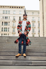 Make a statement with this red and aqua long fleece coat. The vibrant color combination brings bold energy to your cold-weather wardrobe, while the soft fleece fabric ensures warmth and comfort. Perfect for layering, this coat is a stylish addition to any outfit.