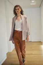 Embrace versatility with this tiger beige reversible blazer. One side features a bold tiger print on the back, while the reverse reveals a playful tiger lining. A standout piece that lets you switch up your look with ease, combining edgy detail with effortless style.
