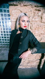 Add a touch of elegance with this Butterfly Cropped Jacket, crafted from 100% wool-blend fabric for warmth, comfort, and chic style.