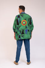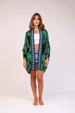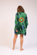 Make a sharp statement with the Spiky A Short Kimono, featuring bold embroidery on the back. Its clean lines and edgy design make it a standout piece for effortless style.