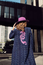 This navy blue double-breasted coat blends classic tailoring with a bold dragon embroidery on the back. The perfect balance of elegance and edge, it’s a standout piece that brings a unique touch to your outerwear collection.