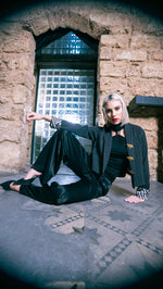 Stay cozy and stylish with this brown jacket featuring black striped lines, crafted from 100% wool-blend fabric.
