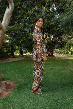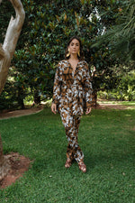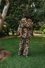 Channel untamed elegance with our Knot-Tie Pants and Wrap Top Set in a daring primal print. This set combines comfort with a touch of wilderness, featuring a knotted waist and a wrap top that’s effortlessly flattering. Perfect for free spirits, this look adds a bold edge to your bohemian style.