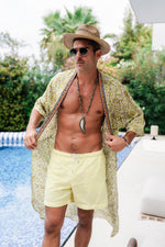 Spiral mandela in light green and white, enhanced with a colorful border and patch for a unique, eye-catching style.