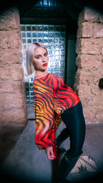 Make a bold statement with the Red Tiger Off-the-Shoulder Top, crafted from 100% silk-touch fabric for a soft, luxurious, and stylish look.