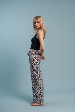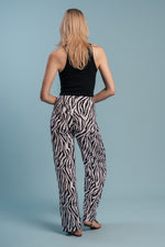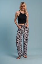 Stand out in these black & white zebra printed wrapped pants. Lightweight and comfortable, they’re perfect for a chic and trendy look.